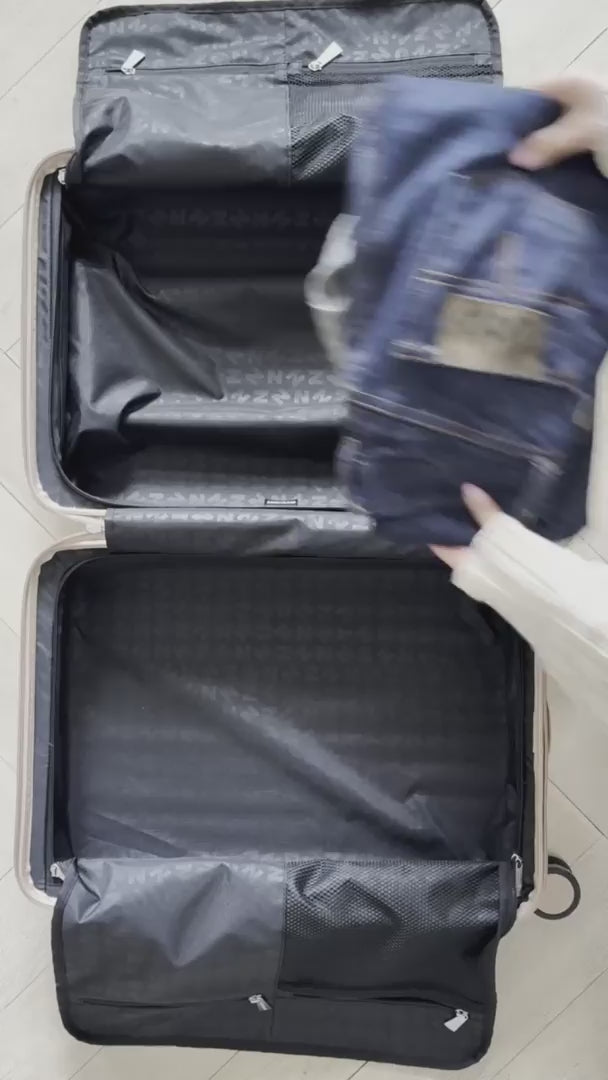 This luggage is crafted with a durable, premium polycarbonate hard shell and finished with a high-quality polyester lining — both made from recycled materials for a more sustainable journey.